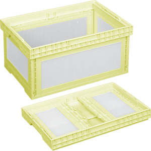 กล่องใส่ชิ้นงานพับได้ เมื่อพับแล้วจะมีขนาดกะทัดรัดเหลือประมาณ 1/3 ถึง 1/6 เมื่อเทียบกับกล่องประกอบเสร็จ